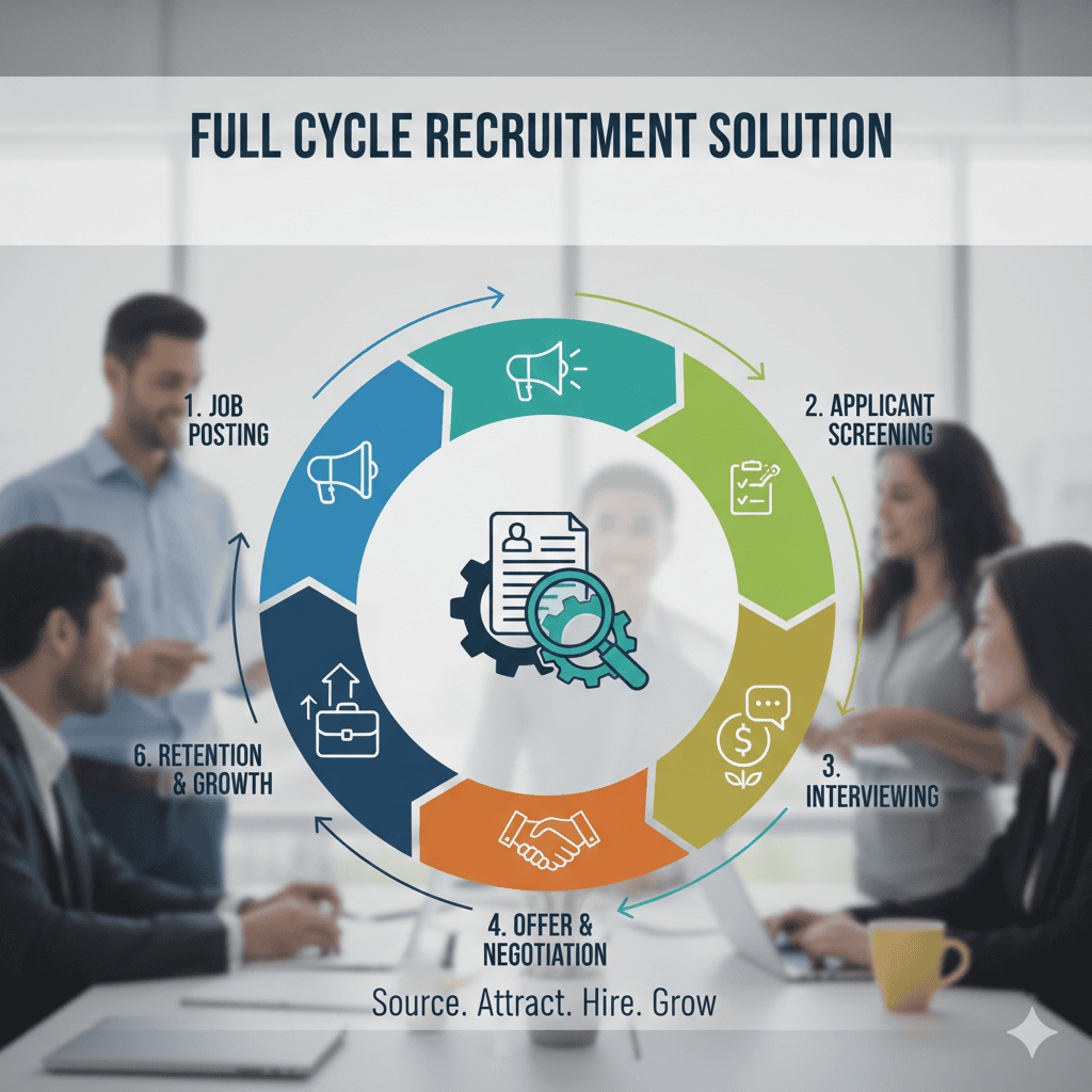We provide full cycle recruitment solution - from sourcing to onboarding, we leverage industry leading ai tools to search for the right candidates . We have our own ATS( Applicant Tracking System) to search and store candidate information.